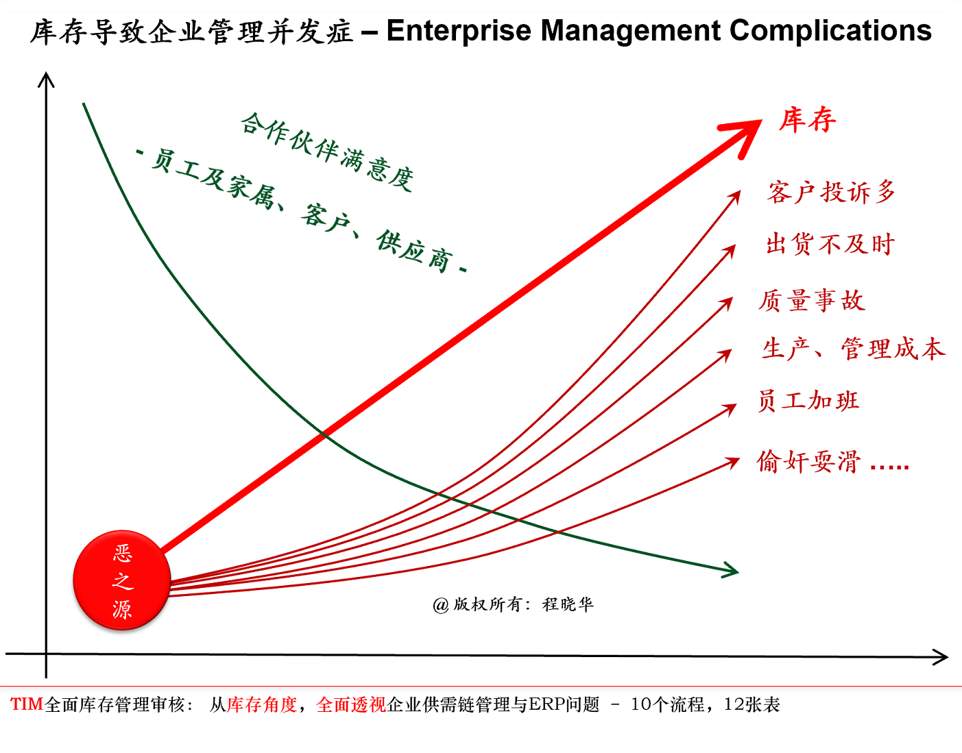 【关键词:仓库、库存控制、安全库存、独立需求、相关需求、成品相关需求、自己的整体库存、大家的整体库存、龙头企业欺负人、配套企业逆来顺受、老大踢老二、老二扇老三、老三揍倒霉蛋、通过库存发现问题】 请允许我先再喊一遍口号:库存控制不是仓库管理。 降低库存的目的是为了更好地出货? 很多人为此不解,尤其是那些搞生产的、做销售的,他们甚至会着急上火 – 出货不就是靠库存吗?降低库存怎么能保证出货? 所有对此持有怀疑态度的人,他们脑子里面大概都有个“安全库存”这个鬼东西在作怪。 在我的文章里面、书里面都多次论述过“安全库存不安全”这个概念,我在这里再简单重复一下为什么: 1.安全库存指的是单个的、独立需求(Independent Demand),而非制造业通常讲的相关需求(Dependent Demand),那个传统的安全库存公式仅仅适用于独立需求,而且需求的波动性还不能太大; 2.正因为上述原因,我们这里说的“降低库存、提高及时交付率”是指降低“整体库存”;这其实也是日本丰田管理大师大野耐一所说的: 库存越多,得到实际需要的零件的可能性就越小,大野的看法是,“尽管你有一大堆库存,却总是缺少某一种零件”(沃麦克(Womack J.P.); 琼斯(Jones D.T.)《 精益思想》)。 可能有人会问,您这里说的好像单纯是指“原材料库存”吧?那成品库存呢?成品库存不是“独立需求”吗? 从纯粹的MRP逻辑角度,是的,成品库存的确是被定义为所谓的独立需求,但那是为了与原材料等相关需求做区分 – 因为需要成品FG1,所以需要FG1生产所需的原材料RM1,RM2 ……RMn,所以这些原材料的需求被定义为“与成品相关的需求”。 这没有错。 但是,很多行业、很多产品的成品需求其实也是“相关需求”,那这个应该怎么理解呢? 你去A超市计划购买烟、酒、糖、茶,还有打火机,结果呢?A那里前四样东西都有,就是没有那个一块钱一个的打火机,很有可能,你掉头就去了附近的B超市,为什么呢? 你想一次性买到你计划购买的所有东西,这就是库存齐套的概念,而“齐套”则往往是指“相关”,只是此相关非彼相关,没有那么直接相关,但还是相关的需求。 同样的道理,我需要买你5种规格的包装纸,结果你只有4种,另外一种你需要我等一个月之后才拿到货,对不起,那我还是买其他造纸厂的吧! 所以,我们所说的整体库存也包括成品库存,这是你“自己的整体库存”。 这是对全面库存管理的第一层次的认识。 第二层次的认识呢? 不仅仅是我们自己的整体库存,还有客户的库存,供应商的库存,乃至是供应商的供应商的库存,客户的客户的 库存 – 所有合作伙伴的库存加起来也叫“整体库存”,我们可以称之为“大家的整体库存”。只有大家的整体库存都降低了,大家在实际上,而不是仅仅账本上,都能赚到钱了,整个链条的及时交付才可能有保障。有人说我们离这个目标太遥远了吧?那不是跟“种太阳”差不多吗? 也是,也不是。 目前我们普遍看到的现象是,老大在外面被人家打了一拳,回头就把自家老二给踢了两脚,而老二呢?见到老三就是三个巴掌!老三没招儿了,就跑到大街上,找了个更小的倒霉蛋给猛打了一顿。而我的看法是: -只要龙头企业不再欺负人,这个事情就好办了; -只要配套企业不再逆来顺受,这个事情也就好办了。 事在人为,没有真功夫,挨打也是正常的。 所以,对库存更深层次的理解是,降低库存本身不是目的,降低库存是手段,通过降低库存,发现问题、解决问题才是目的 – 问题都解决了,那给客户及时交付还能是个问题吗? 所以,我提出“从库存角度,全面透视企业供应链管理与ERP/IT问题”,道理其实很简单 - 看一个是否健康,你就看他是不是胖的难受就行了。